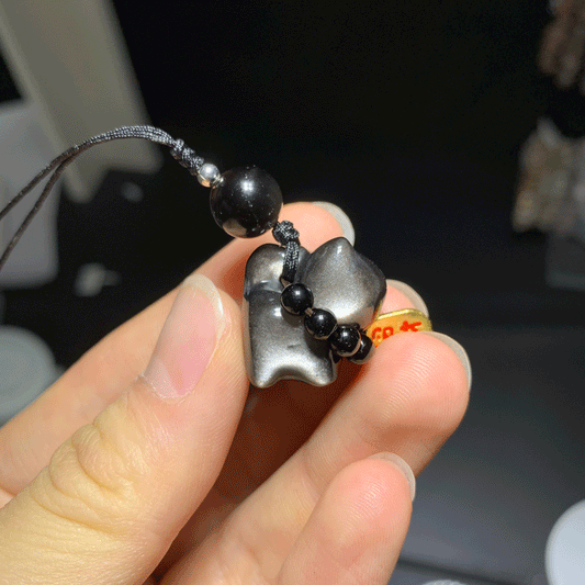 Wholesale Silver Obsidian Crystal Cat Keychain